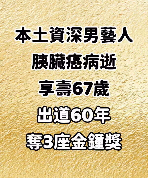本土資深男藝人,胰臟癌病逝享壽67歲 出道60年奪3座金鐘獎