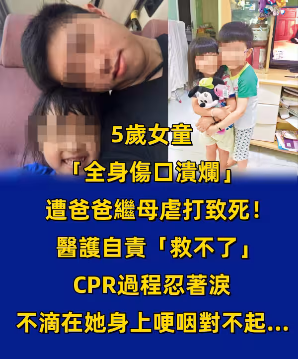 5歲女童「全身傷口潰爛」遭爸爸繼母虐 打 致 死!醫護自責「救不了」CPR過程忍著淚不滴在她身上哽咽對不起…