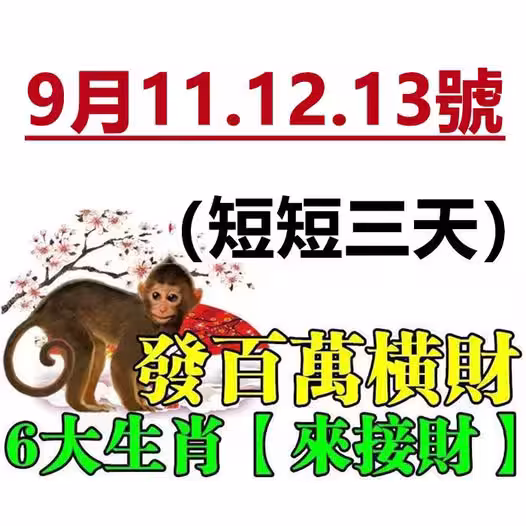 9月11、12、13號(短短三天)發百萬橫財,6大生肖來接財