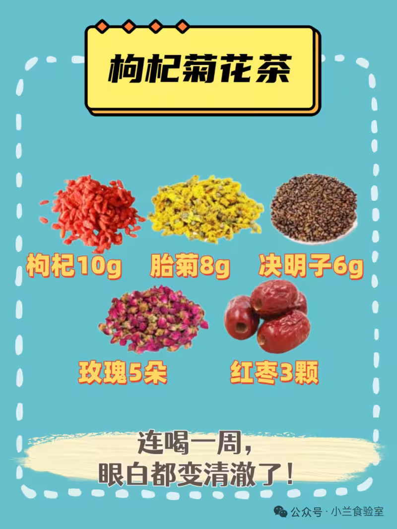 ▫️功效:清肝明目、降火去燥,適合熬夜後眼睛乾澀、臉色發黃的打工人!連喝一周,眼白都變清澈了!