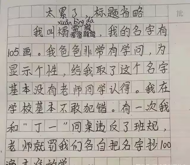 小學生因名字走紅 全名72劃,班導崩潰:我教不了你....