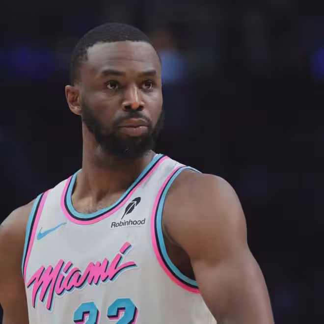 2024-25賽季常規賽,維金斯在熱火場均19分4.2籃板3.3助攻1.2搶斷1蓋帽2.5失誤,三項命中率:45.8%,36%,73.1%。今年季後賽,他場均11.5分3.3籃板2.3助攻0.3搶斷1.3蓋帽2.8失誤,三項命中率:37.2%,35%,70%。