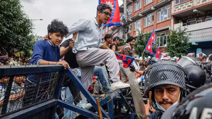 尼泊爾年輕人上街抗議