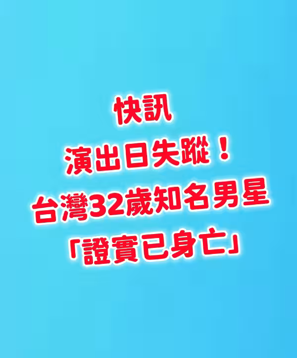 快訊/演出日失蹤 本土喜劇32歲知名男星「證實已身亡」
