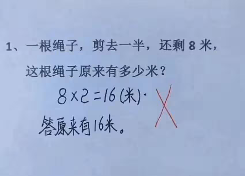 國小數學題「8×2=16」被打叉「全班只有你女兒錯了」老師解釋後,家長快被逼瘋