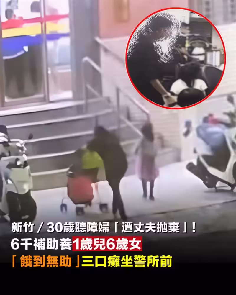 30歲新竹聽障婦「遭丈夫拋棄」!6千補助養1歲兒6歲女「餓到無助」:三口癱坐警所前