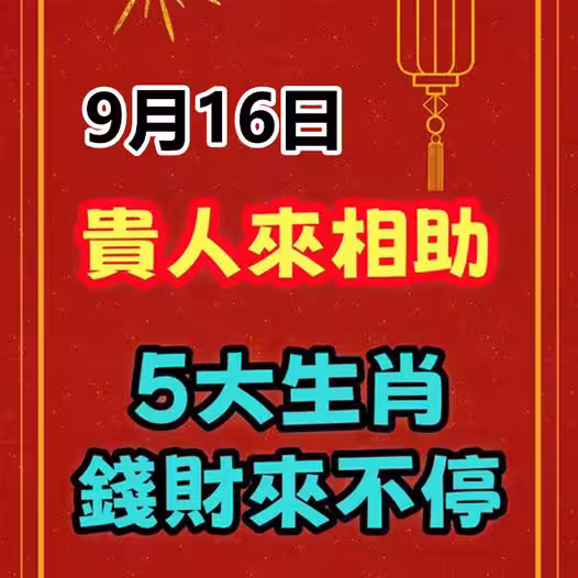 9月16日貴人來相助,5大生肖錢財來不停