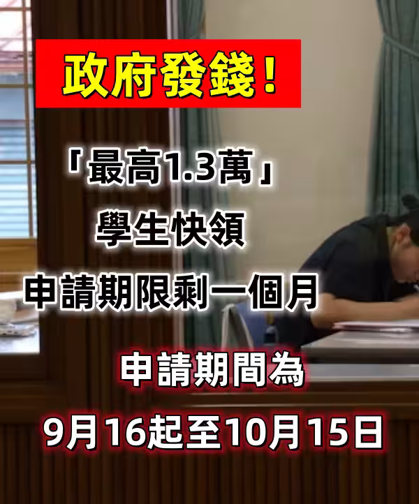 快訊/政府發錢!「最高1.3萬」學生快領 申請期限剩一個月