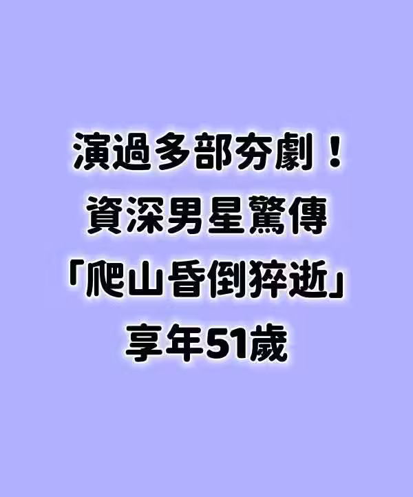 演過多部夯劇!資深男星驚傳「爬山昏倒猝逝」享年51歲!