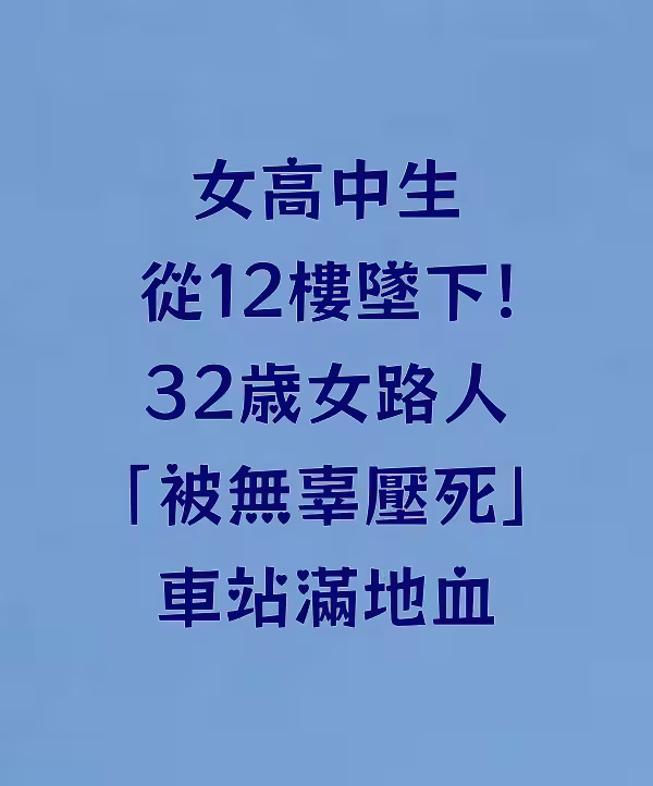 女高中生從12樓墜下!32歲女路人「被無辜壓死」車站滿地血~