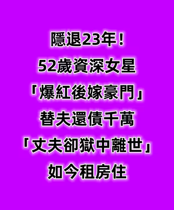 隱退23年!52歲資深女星「爆紅後嫁豪門」替夫還債千萬「丈夫卻獄中離世」:如今租房住