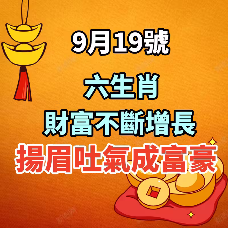 9月19號:六生肖財富不斷增長,揚眉吐氣成富豪!