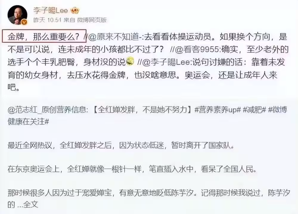 另外營養學家范志紅,發表了一篇名為《全紅嬋發胖,不是她不努力》的文章,為她正名。
