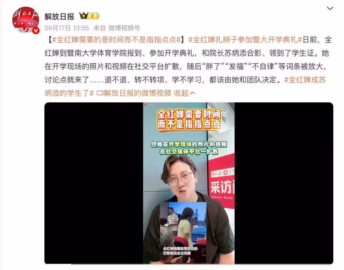 「最後一類呢,就是祝福派和期待派,祝福派說「健康就好了,功成身退也值了」,期待派就說「期待三戰奧運」、「不行就試試3米板,轉個項目」。全紅嬋雖然是世界冠軍,但也是一個普普通通的姑娘,跳水項目被反覆提及的就是發育關,身高、體質、激素水平變化,都會影響空中的姿態和爆發力。」