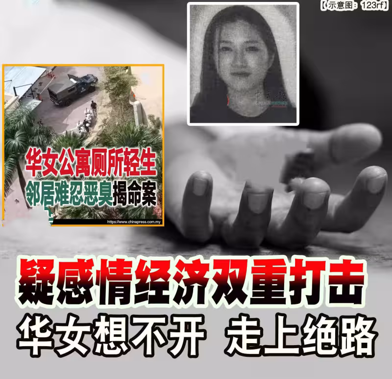 有消息指出,死者雖有一份工作,但依舊入不敷出,已4個月沒繳交房租,相信是在感情問題和經濟壓力的雙重打擊下而想不開。