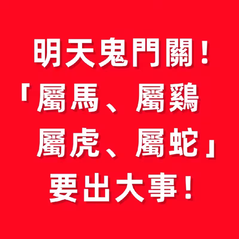 明天鬼門關!「屬馬、屬雞 、屬虎、屬蛇」要出大事!