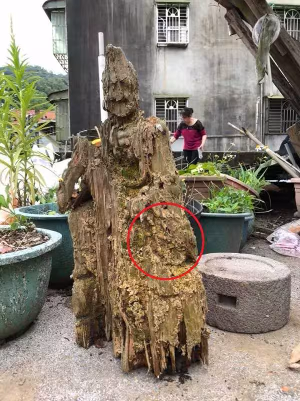 好神,遭白蟻咬10年枯木竟變濟公佛像,眼尖網友發現手上還有驚人細節,根本神跡