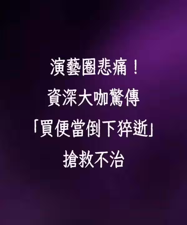 演藝圈悲痛!資深大咖驚傳「買便當倒下猝逝」搶救不治。