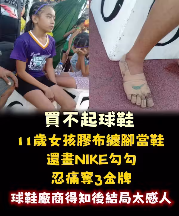 買不起球鞋 ,11歲女孩膠布纏腳當鞋,還畫NIKE勾勾忍痛奪3金牌,球鞋廠商得知後,結局太感人~