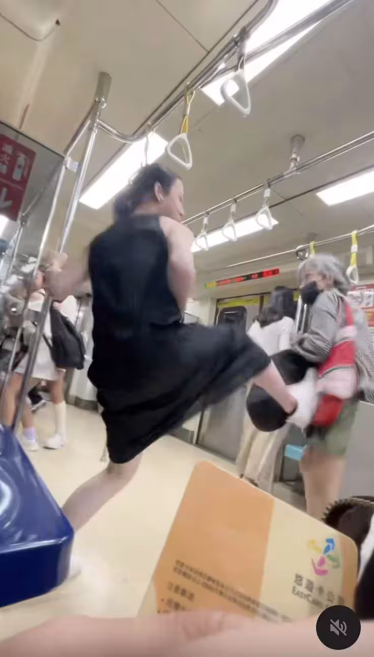 台北捷運9月29日下午,爆出有一名老婦人用手提袋攻擊坐在博愛座的民眾,不料,該民眾在被揮擊了兩次後,隨即起身踹了老婦一腳,老婦往後跌到後面的椅子。