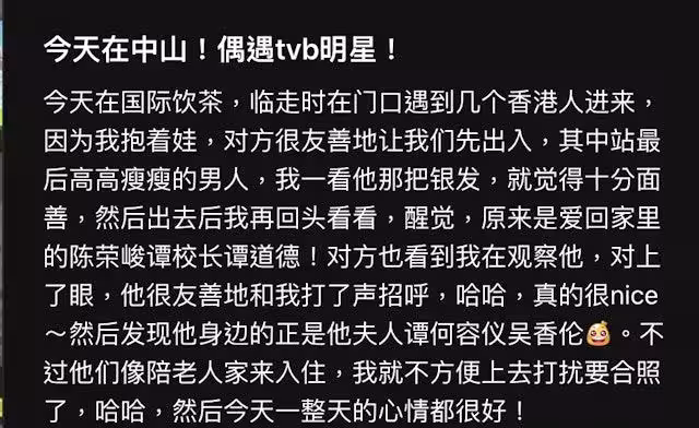 近日,有網友發現陳榮峻和吳香倫二人出現在中山某酒店大堂。該網友更是因為要照顧孩子,所以出行不方便。而陳榮峻更是主動讓路並為該網友推門。網友後來才認出來是藝人陳榮峻,隨行的是他太太吳香倫。