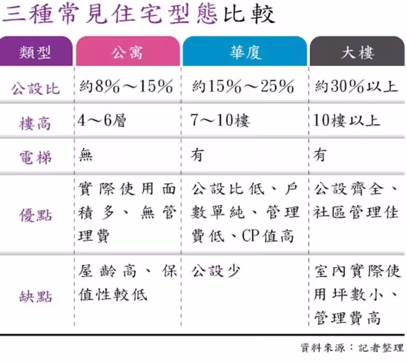 她解釋,一般華廈公設比落在15%至25%,和現在公設動輒30%以上的新大樓相比,實際可使用坪數落差大;舉例來說,一間40坪的大樓,室內使用只有28坪,但同樣坪數的華廈,室內可使用空間超過30坪,「華廈公設比低、住戶單純,CP值高,最符合我的需求。」