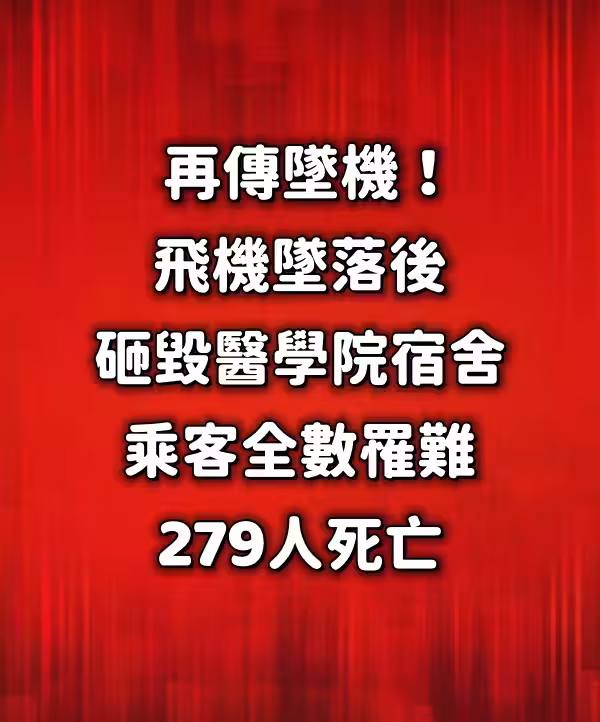 印度航空日前發生一起嚴重空難,飛機墜落後,砸毀一棟醫學院宿舍,整起事件造成至少279人死亡,震驚國際,目前黑盒子已尋獲,正在釐清失事原因。