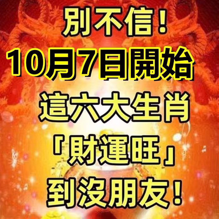 別不信!10月7日開始,這六大生肖「財運旺」到沒朋友 !