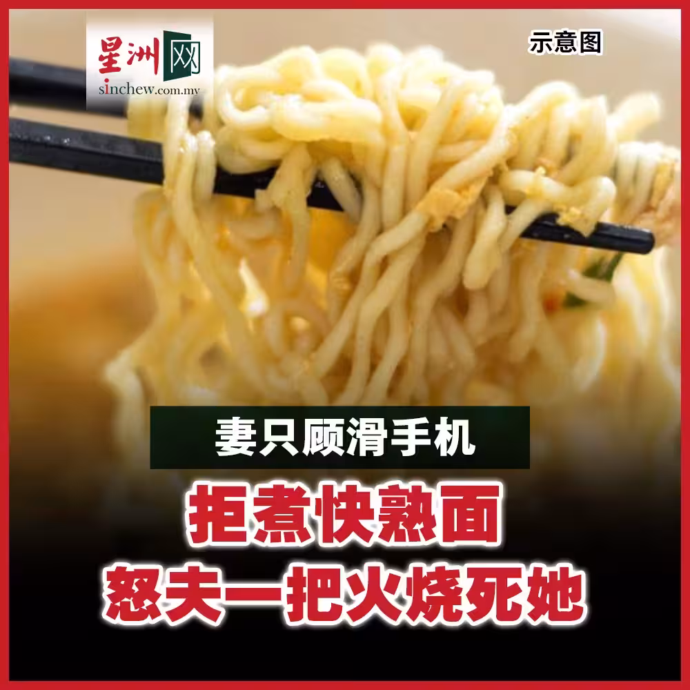 妻只顧滑手機拒煮快熟面 怒夫一把火燒死她