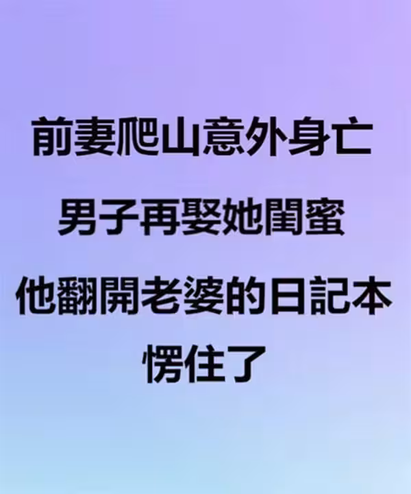 前妻爬山意外身亡,男子再娶她閨蜜,他翻開老婆的日記本愣住了!