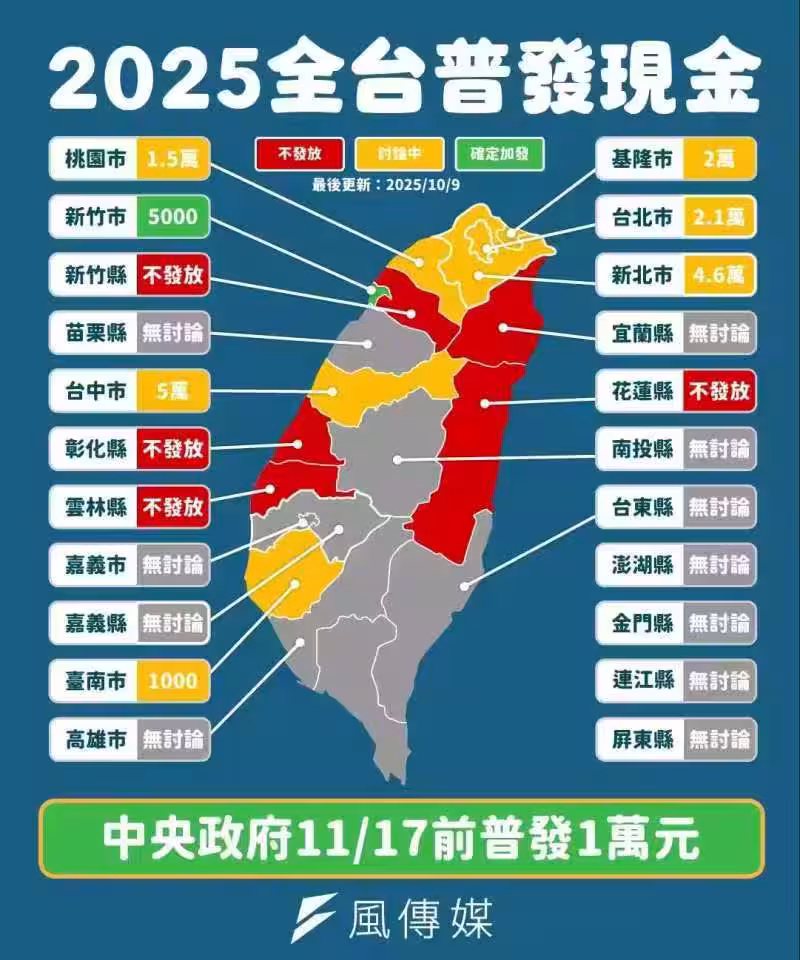普發1萬元確定!新竹市宣布加碼5000元,台北、新北、台中...各縣市加碼進度曝光!