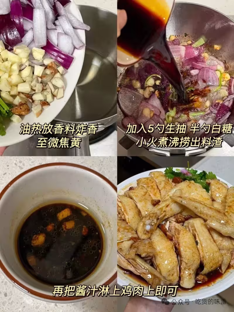 4、加入5勺生抽、半勺白糖,再把醬汁淋上雞肉上即可