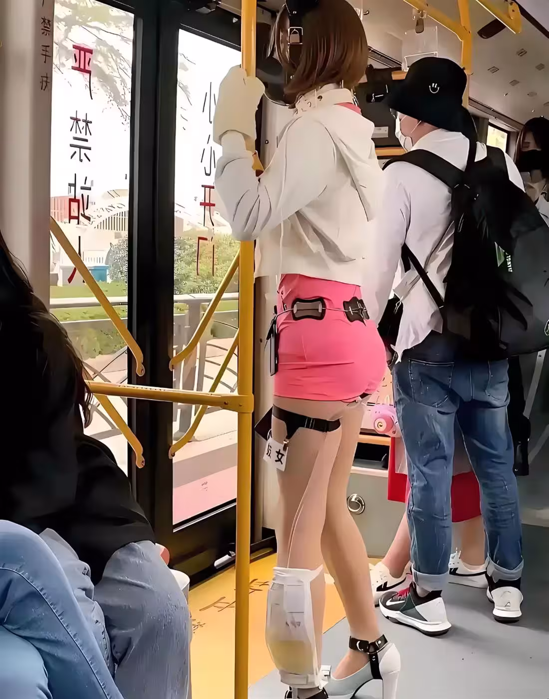 就在這時,公交車一個顛簸。她踉蹌了一下,為了保持平衡,下意識地伸手去扶欄杆,寬大的裙擺隨之揚起了一個短暫的弧度。就是這一剎那!坐在她旁邊的一位眼尖的女士,猛地倒吸了一口涼氣,下意識地捂住了嘴。女孩的腿上,竟然固定著一個透明的尿袋,一根細長的導尿管沿著腿側延伸。