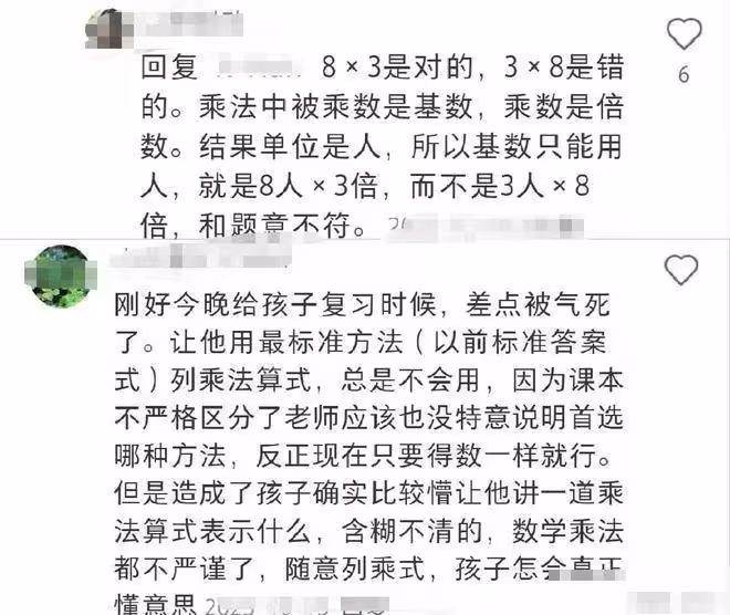 老師表示8×3才是標準答案,3×8是錯的。