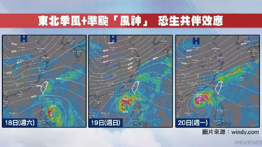 迎風面的北部、東北部及東部地區會與環境的東北風肇生共伴效應的額外且連續降雨,要特別注意防範。
