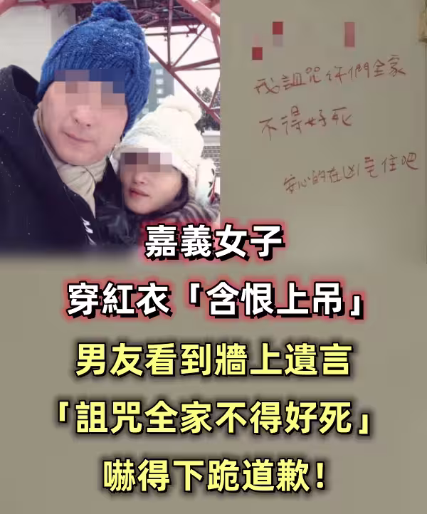 嘉義女子穿紅衣「含恨上.吊」男友看到牆上遺言「詛咒全家」嚇得下跪道歉...