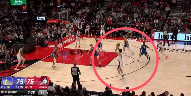 外線架炮穩穩出手,和庫里在外線展開對轟的待遇,不是誰都能有的,小楊真是太自信了,這是楊瀚森這一節球當中打得非常出色的一個回合。而且能夠看到,他甚至有時間做一個假裝要傳球的虛晃動作,先把人騙走再出手,楊瀚森在場上越來越敢做動作了。
