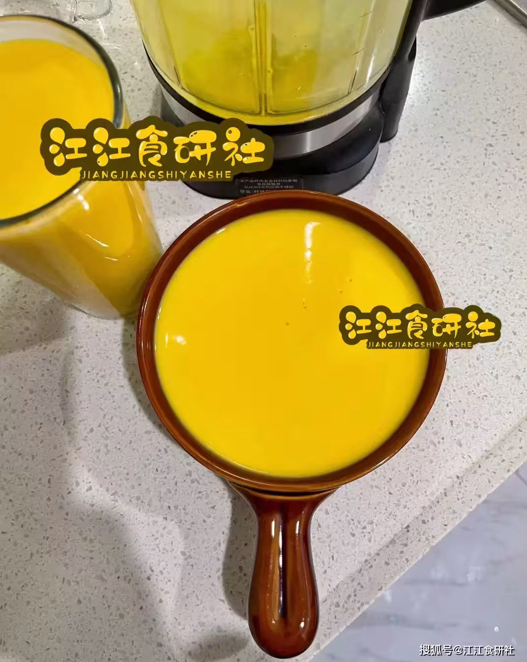 把蒸好的南瓜放進破壁機,加一盒純牛奶(別用奶粉,奶粉沖的沒那股鮮勁兒),再加少量溫水,打成細膩的糊。要是沒有破壁機,用勺子把南瓜壓成泥也行,就是得壓得細一點。