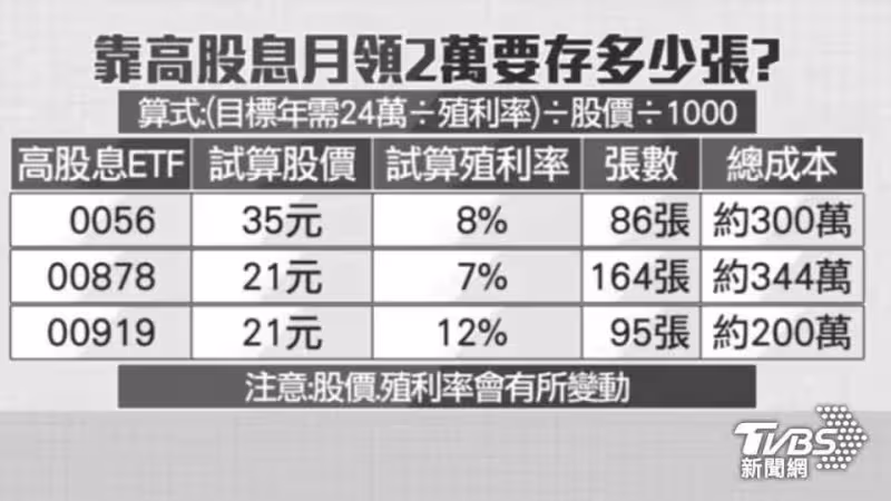 若要靠高股息月領2萬元,需存夠一定張數。