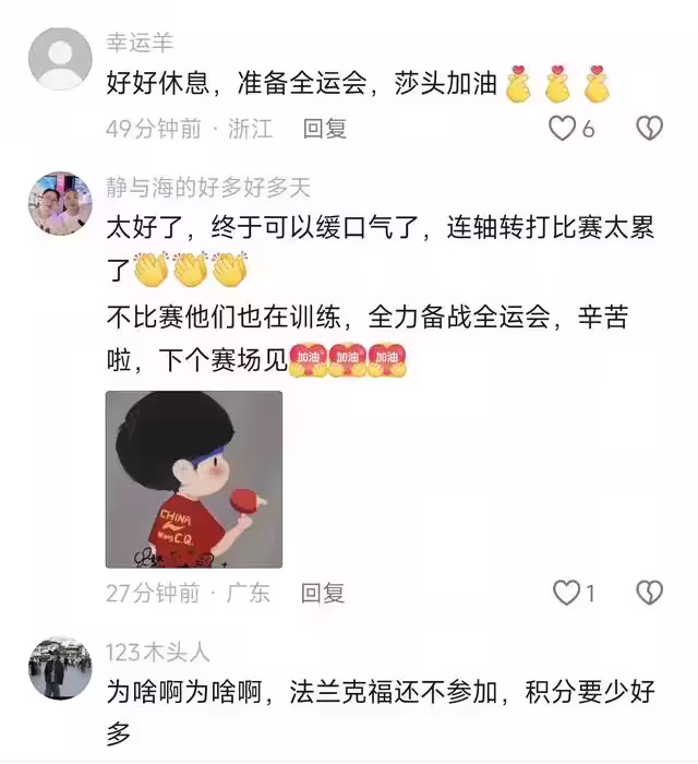 也有一部分網友認為,中國的大滿貫主力們都太累了,這次退賽還可以鍛鍊一下小將,簡直是一舉兩得啊。