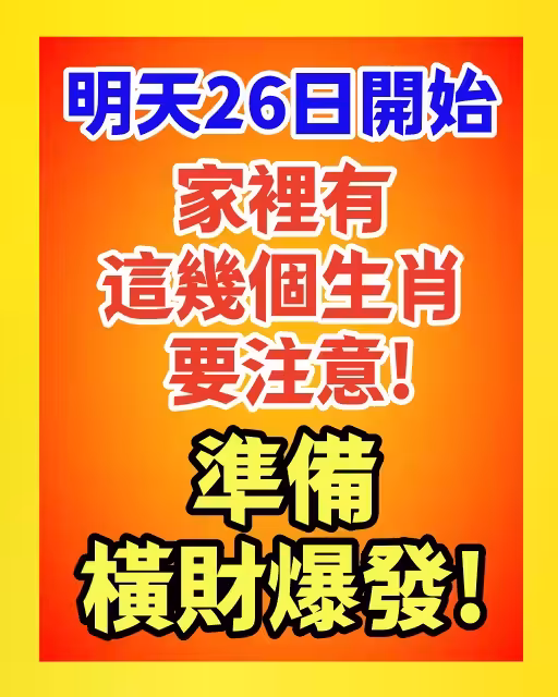 明天26日開始,家裡有這幾個生肖要注意,準備橫財爆發!