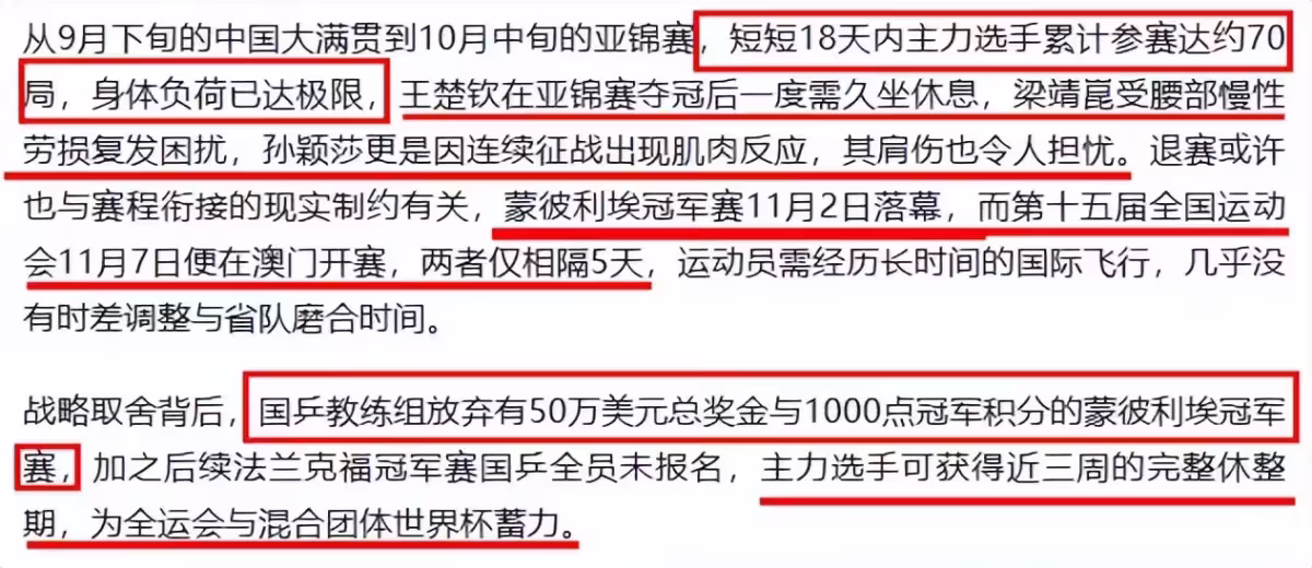 遼寧隊的陳幸同、王藝迪,江蘇隊的蒯曼,這三個人還得留在蒙彼利埃打比賽,沒法提前回省隊跟隊友磨合,對全運會女團、女單項目影響太大了。