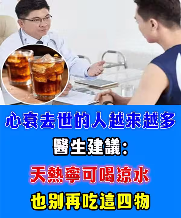 心衰去世的人越來越多!?醫生建議:天熱寧可喝涼水,也別吃這四物