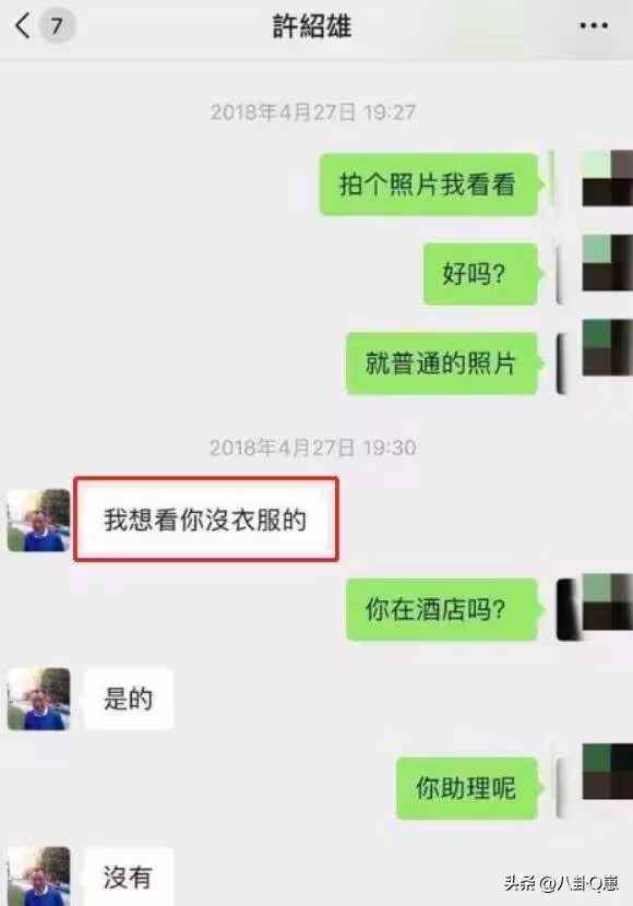2019年,許紹雄和一個女生的聊天記錄,將許紹雄推上了輿論的風口浪尖!