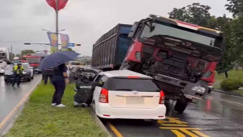 天雨路滑釀慘禍!聯結車逆向衝撞2小客車 4人受傷送醫