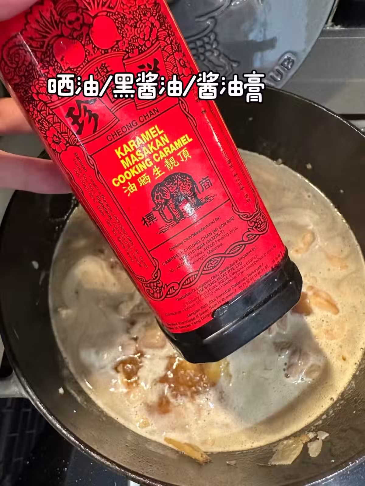 3)加入開水蓋過雞肉,少許鹽和糖調味,加入炸腐竹蓋上蓋子燜煮15分鐘熄火燜5分鐘煮,即可起鍋享用。
