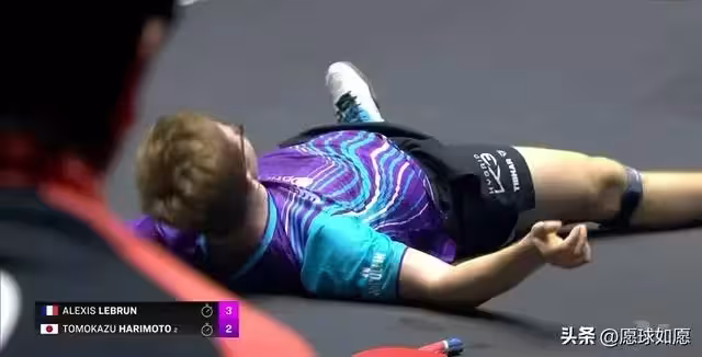 賽後贏球的勒布倫直接後仰躺在地上,然後無視張本智和,直接瘋狂在場地內慶祝,並第一時間擁抱了自己的教練。這一系列慶祝動作之後,面對迎面走來的張本智和,勒布倫甚至還秀起了肌肉。