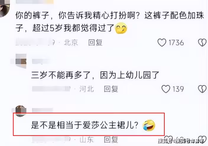 可再看這位媽媽,就顯得格外扎眼——她穿了條特別的褲子,上面滿是水鑽,顏色也很張揚。