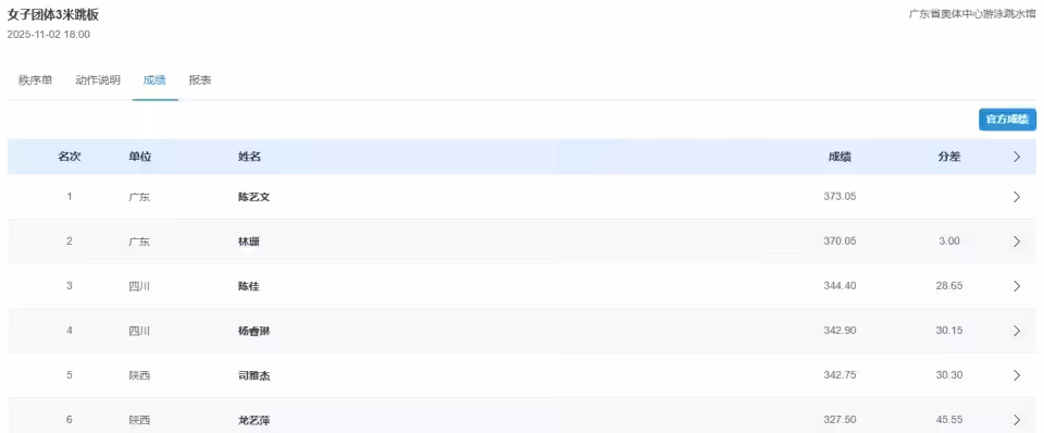 不得不承認,此次的跳板成績是讓廣東隊可以整體取得巨大優勢的關鍵。但全紅嬋並沒有拖後腿,且仍舊在參與的雙人10米台中,拿到了第一名。