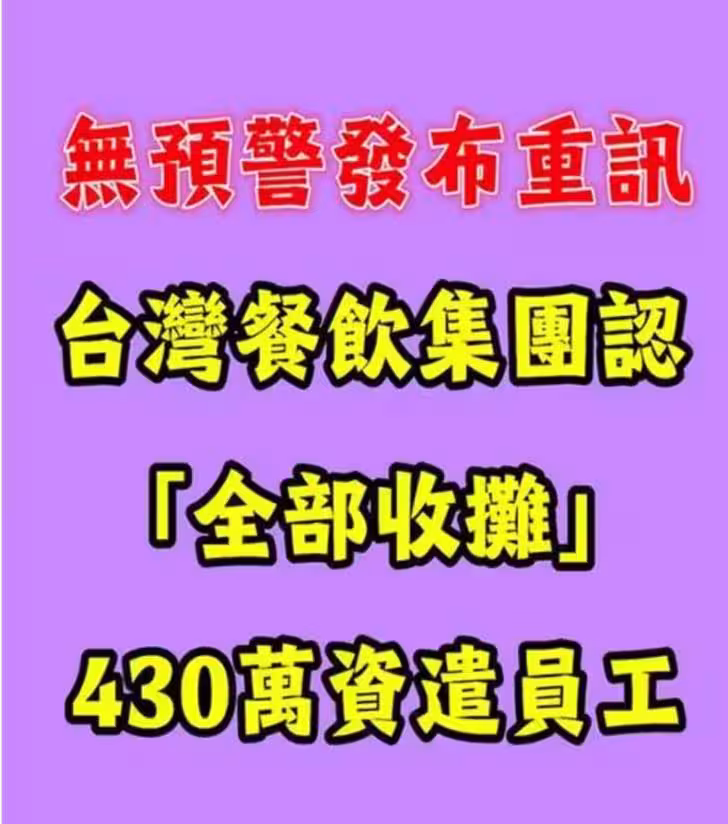 台灣餐飲集團重訊認了「全面收攤」!員工資遣費達430萬,下一步曝光